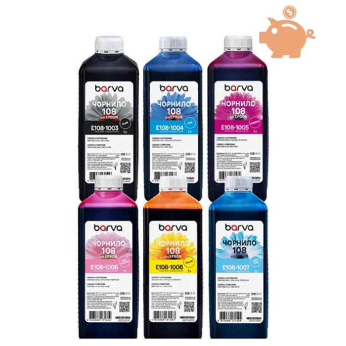 Совместимые чернила Epson 108 Barva Ищете способ печатать много и дешево без потери качества? Литровая фасовка чернил Barva (Epson 108) – это ваш выбор номер один. Покупая литровые чернила, вы получаете огромный запас краски по цене, которая в разы выгоднее мелкой фасовки.